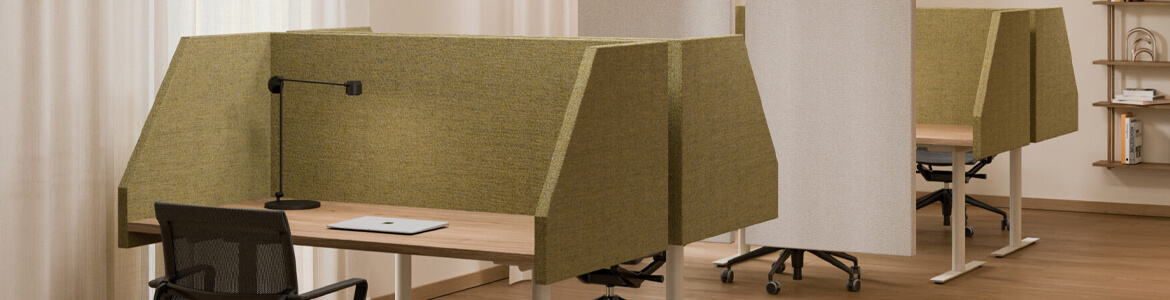 I vårt sortiment hittar du allt från ljudabsorbenter för tak, väggar och skärmar för avskärmning till skrivbord. Svårt att veta vad du ska ha? Kontakta oss här, så hjälper vi dig att hitta rätt produkter.